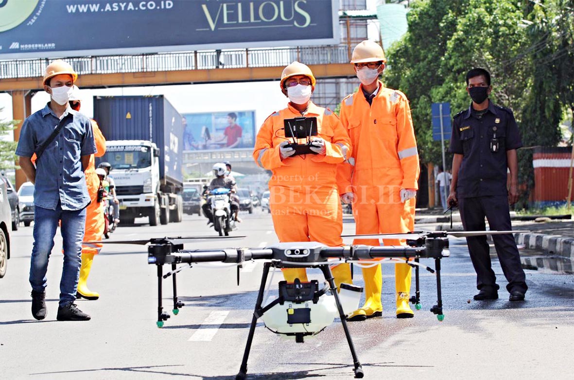 Untuk penyemprotan disinfektan Pemkot Bekasi bekerjasama dengan beberapa komunitas drone, diantaranya Federasi Drone Indonesia, Kalong dan Agrodrone. Komunitas tersebut menurunkan dua peralatannya.