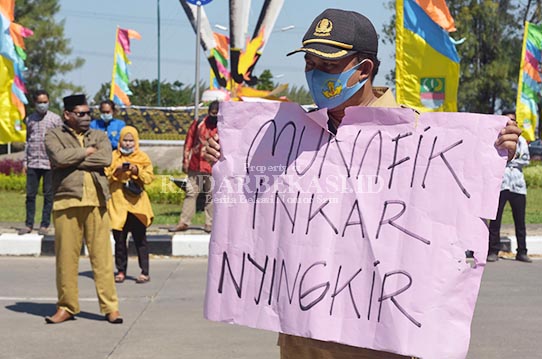 RADARBEKASI.ID, BEKASI – Para guru honorer yang tergabung dalam Forum Pembela Honorer Indonesia (FPHI) Koordinator Daerah Kabupaten Bekasi, berkeliling Kantor Pemerintah Kabupaten (Pemkab) Bekasi untuk mendapatkan perhatian Bupati Bekasi, Eka Supria. Rabu (26/8).
