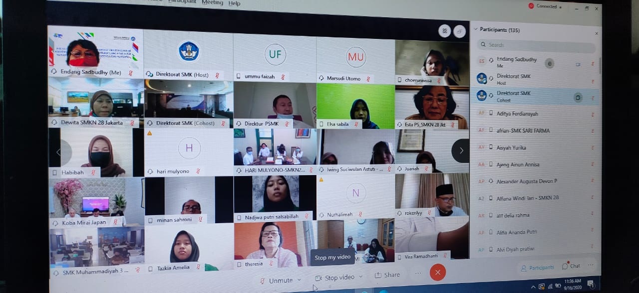 Launching Pelatihan Calon Tenaga Kerja Caregiver ke Jepang yang digelar Rabu 15 September kemarin, melalui video conference yang dihadiri Direktorat SMK, BP2MI, SMK almamater calon tenaga kerja, dan para calon tenaga kerja Caregiver ke Jepang.