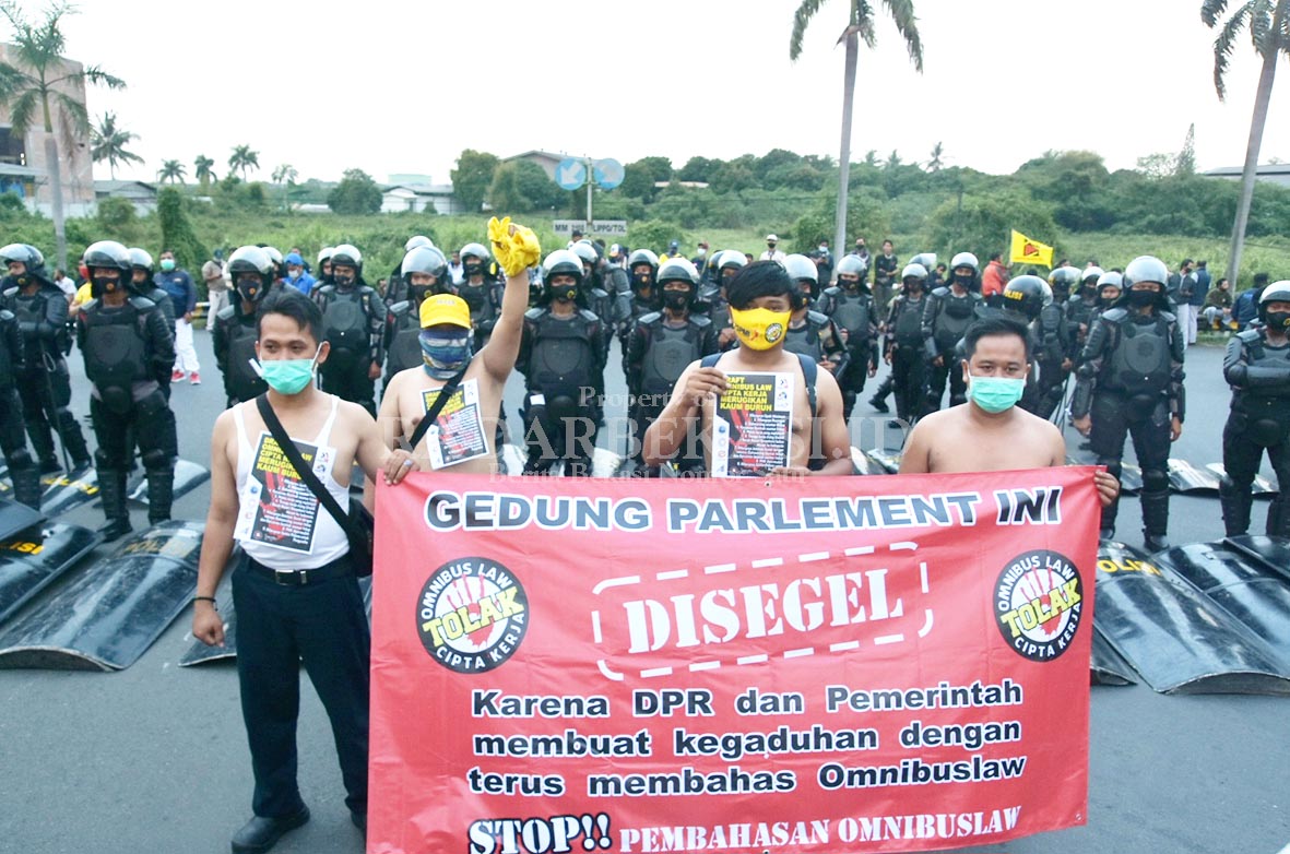 Sementara itu, ribuan buruh yang tergabung dalam Aliansi Buruh Bekasi Melawan (BBM) melakukan aksi demonstrasi di kawasan industri EJIP, Cikarang Selatan Kabupaten Bekasi, Senin (5/10). Aksi ini dilakukan setelah pihak kepolisian menghadang keberangkatan ribuan buruh tersebut ke Gedung DPR/MPR Senayan Jakarta.