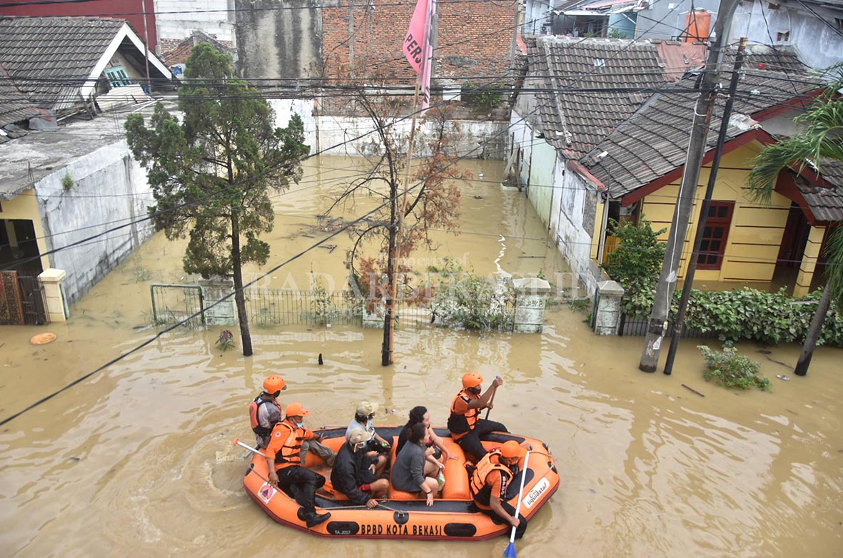 RADARBEKASI.ID, BEKASI – Masyarakat Bekasi diminta waspada menghadapi peralihan cuaca saat ini. Setelah puting beliung ‘mengamuk’ di Kecamatan Bekasi Utara dan Babelan pada Jumat (23/10), kemarin ribuan rumah diterjang banjir kiriman dengan ketinggian air hingga 2,5 meter. Ratusan warga terpaksa harus mengungsi ke tempat yang lebih aman.
