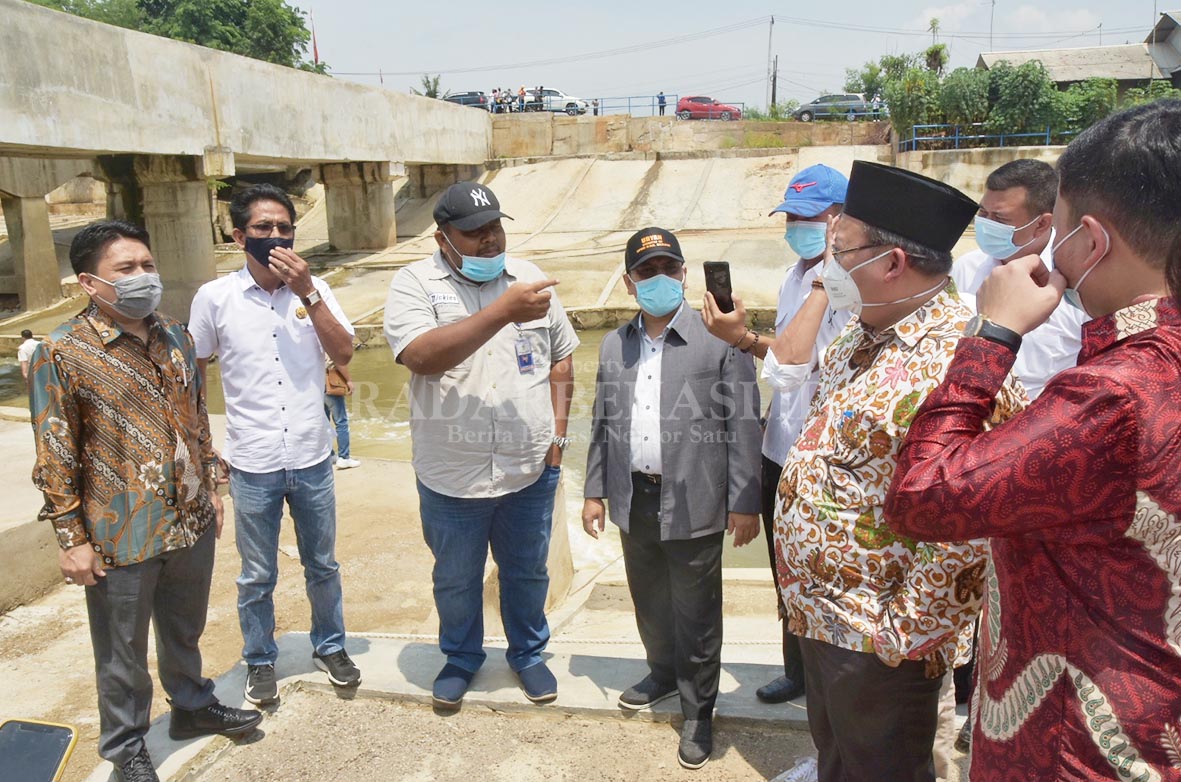 LAKUKAN SIDAK : Sejumlah anggota DPRD Kabupaten Bekasi, melakukan inspeksi mendadak (sidak) ke Sungai Cikarang Bekasi Laut (CBL) Cibitung, Kabupaten Bekasi, Rabu (25/11). ARIESANT/RADAR BEKASI