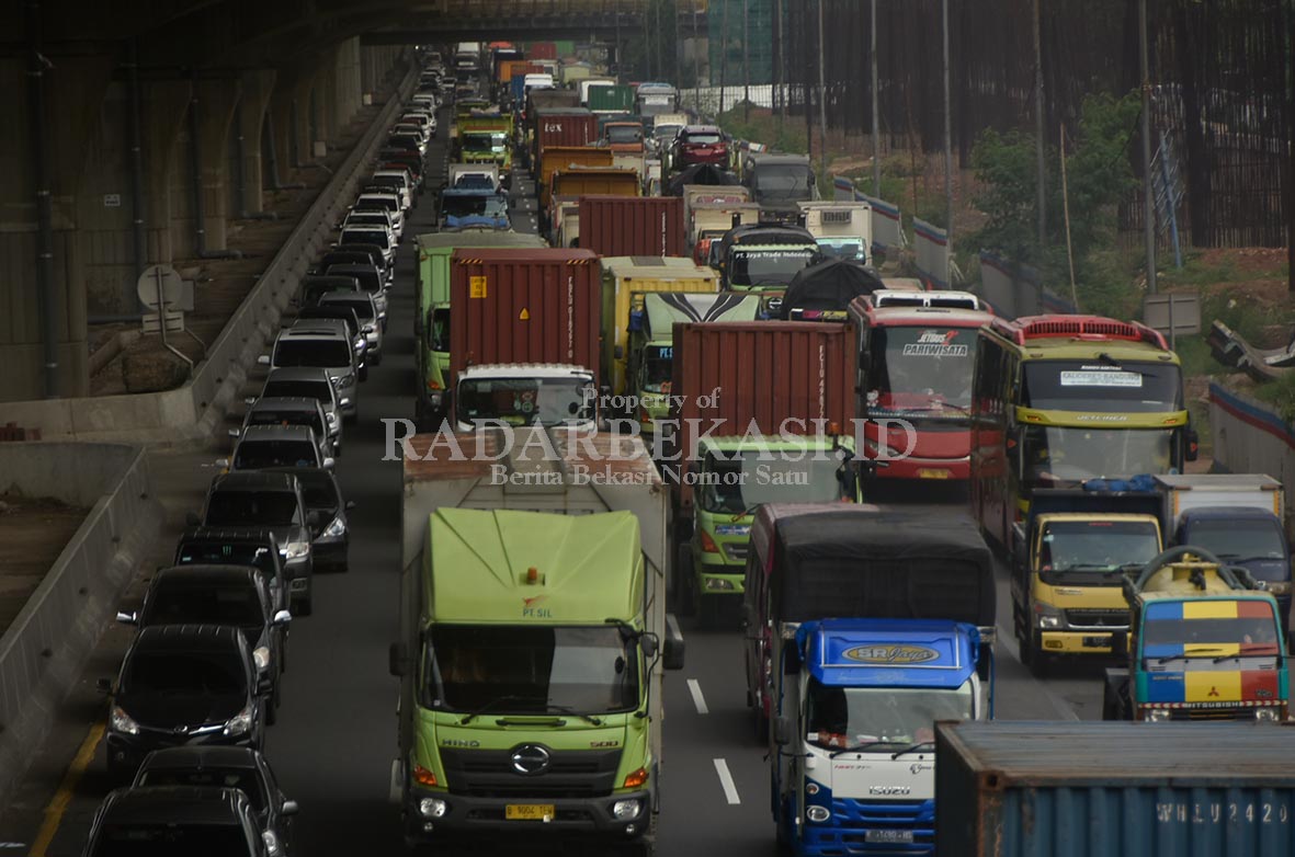 RADARBEKASI.ID, BEKASI – Ruas Tol Jakarta-Cikampek menuju Cikarang mengalami kemacetan mulai dari Gerbang Tol Bekasi Timur hingga Kilometer 24, tepatnya di depan pintu keluar Tol Cibitung, Kabupaten Bekasi, Selasa (1/12).