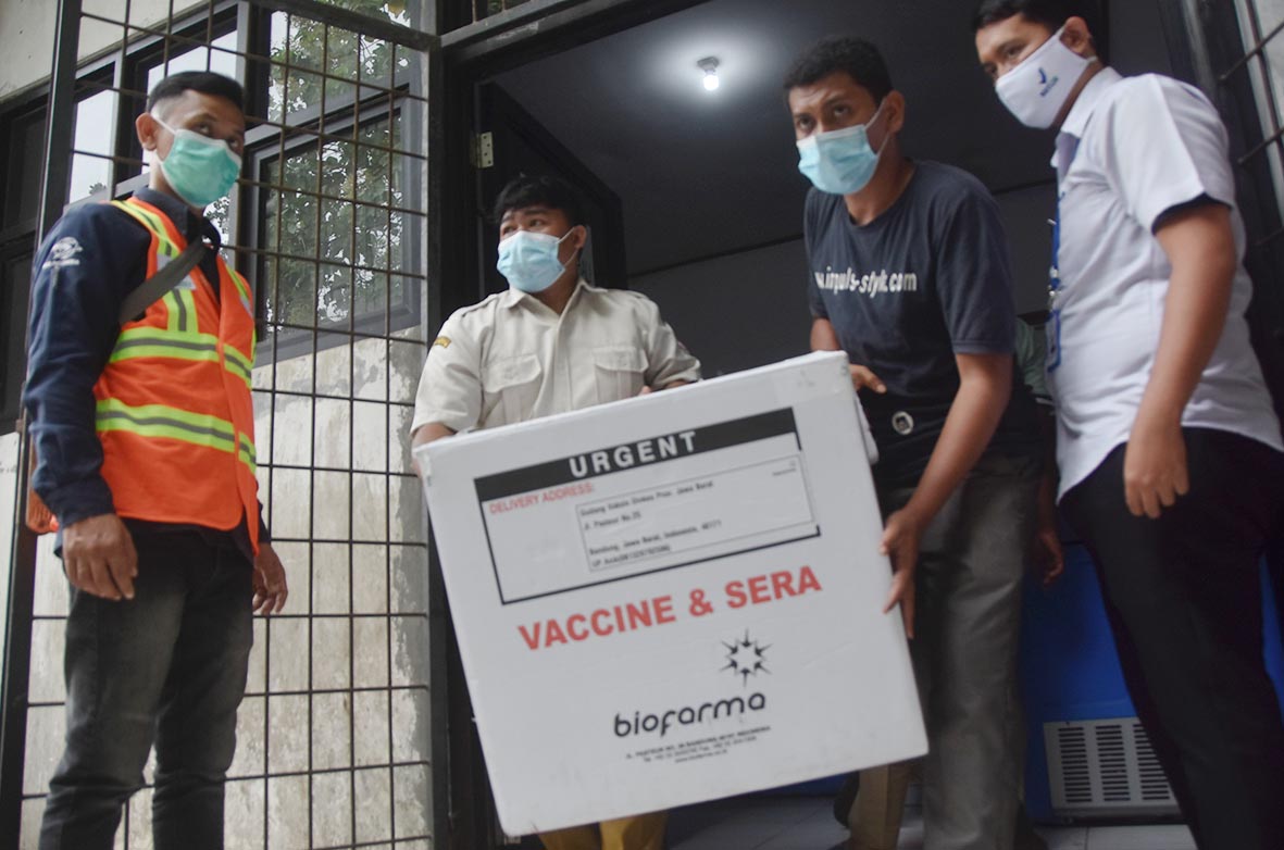 Informasi terakhir yang dihimpun oleh Radar Bekasi, vaksinasi pertama kali dilakukan di tujuh daerah, yakni Kota Bandung, Kota Bekasi, Kota Bogor, Kota Depok, Kota Cimahi, Kabupaten Bandung, dan Kabupaten Bandung Barat. Pemerintah Kota Bekasi telah menerima vaksin, diantar bersamaan dengan vaksin yang akan diberikan kepada Pemerintah Kota Depok, saat ini tersimpan di instalasi farmasi, Jalan Bayan I, Nomor I, Kelurahan Mustikajaya, Kecamatan Mustikajaya, Kota Bekasi.