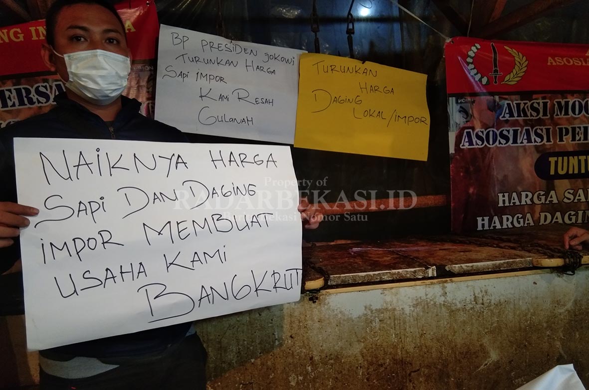 Sementara itu, ratusan pedagang daging sapi melakukan aksi protes. Mereka membentangkan spanduk berisikan tuntutan agar pemerintah menurunkan harga sapi impor asal Australia. Mereka yang tergabung ke dalam Asosiasi Pedagang Daging Cikarang ini juga bersepakat melakukan mogok dagang (tidak berjualan) selama tiga hari.