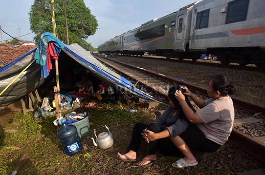 Kondisi pengungsian dipinggir rel ini sangat memprihatinkan, karena tenda yang di dirikan oleh warga sangat tidak layak, mengingat saat hujan air masuk ke dalam tenda. Terlebih, warga harus berhati-hati, karena kereta setiap saat melintas.
