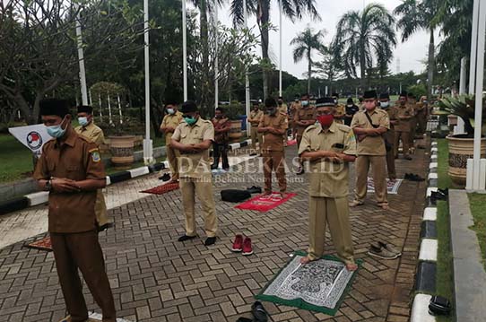 RADARBEKASI.ID, BEKASI – Sejumlah guru honorer ‘Ketuk Pintu Langit’ melalui ritual salat ghaib di depan Kantor Pemerintah Kabupaten (Pemkab) Bekasi, Senin (29/1).