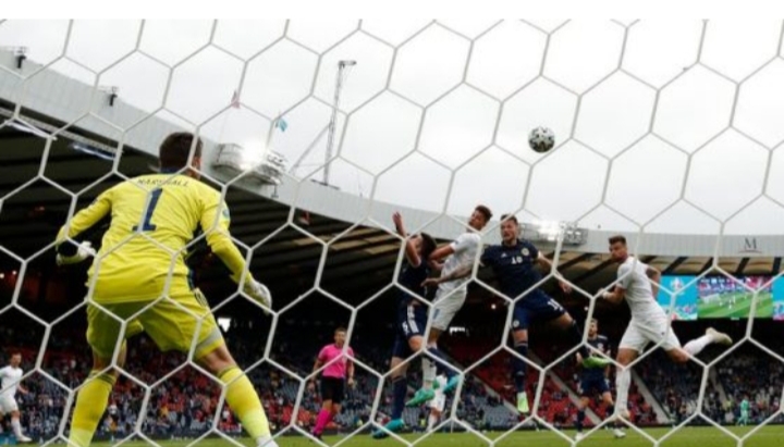 Menerima assist lambung dari bek Vladimir Coufal, Schick langsung menyambutnya dengan sundulan keras yang tak dapat diantisipasi oleh kiper Skotlandia, David Marshall.
