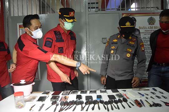 RADARBEKASI.ID, BEKASI – Penjagaan Lembaga Pemasyarakatan (Lapas) Kelas IIA, Bulak Kapal, Bekasi Timur dinilai masih lemah. Buktinya, warga binaan memiliki barang terlarang di dalam kamarnya. Hal ini diketahui saat Razia gabungan pada Rabu malam kemarin.