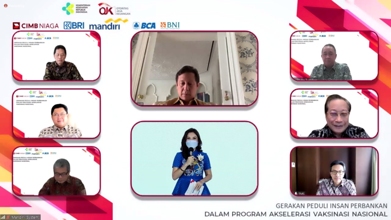 Hadir secara virtual dalam seremoni “Gerakan Peduli Insan Perbankan” Menkes, Budi Gunadi Sadikin, Kepala Eksekutif Pengawas Perbankan OJK, Heru Kristiyana, Presiden Direktur BCA Jahja Setiaatmadja, Direktur Utama Bank Mandiri, Darmawan Junaidi, Direktur Utama, BRI Sunarso, Direktur Utama BNI Royke Tumilaar, Direktur BCA, Haryanto T. Budiman, Presiden Direktur CIMB Niaga, Tigor M. Siahaan, dan Direktur Compliance, Corporate Affairs and Legal CIMB Niaga, Fransiska Oei.