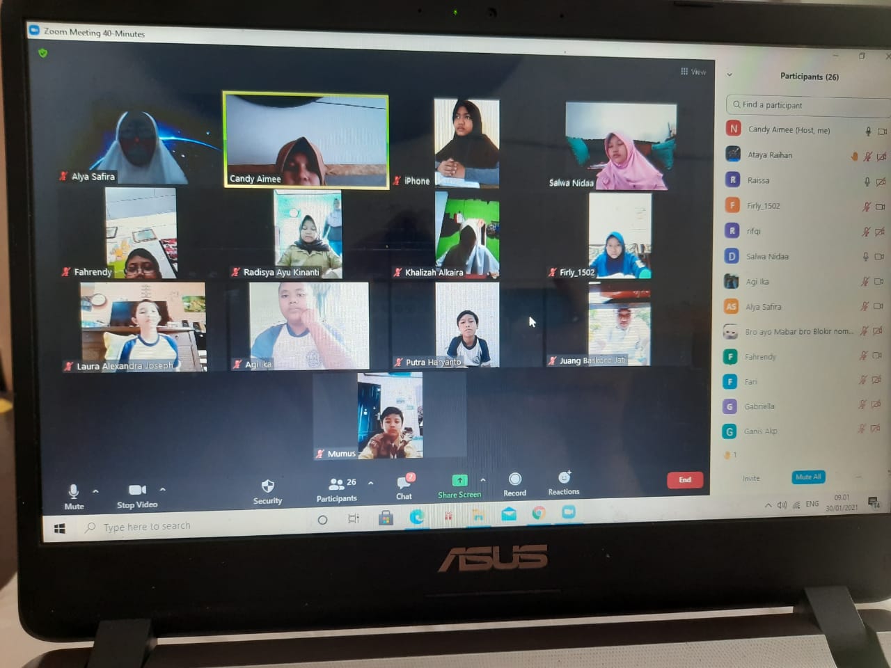 “Kita ingin metode pembelajaran tahun ini lebih baik untuk siswa, makanya di awal kita sampaikan kepada siswa untuk bekerjasama dengan baik. Untuk mencapai pembelajaran yang baik” ucapnya. Selain itu, guru kembali mengingatkan kepada siswa terkait tata tertib pelaksanaan pembelajaran secara daring. (dew)