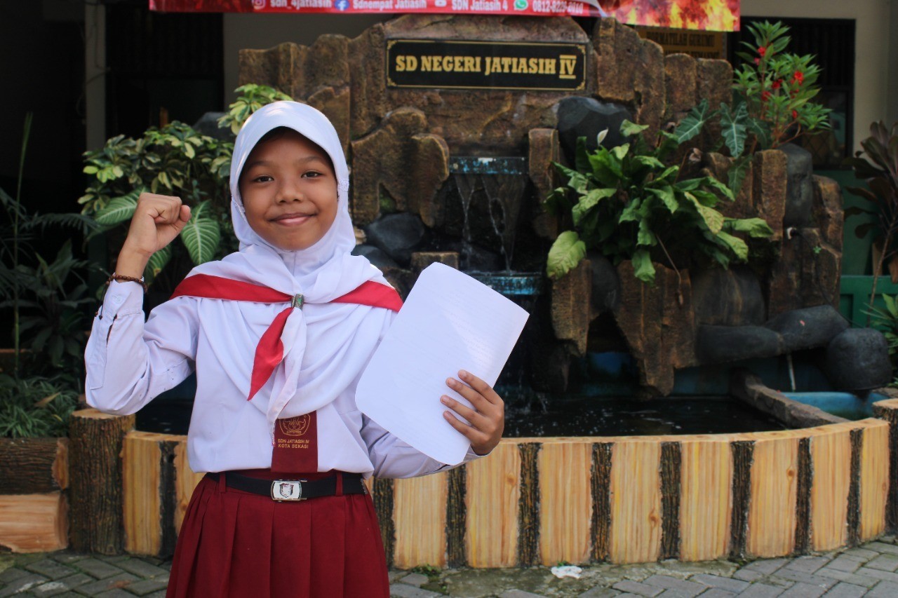 RADARBEKASI.ID, BEKASI – Siswa bernama lengkap Khayla Batrisya Azzahra (10) ini sedang menekuni belajar membaca dan menulis puisi yang sudah digelutinya beberapa tahun lalu.