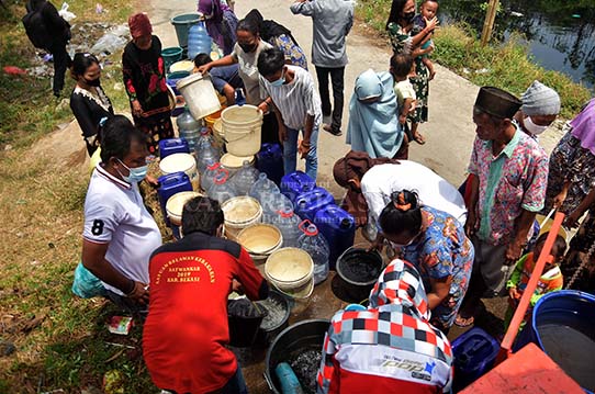 CIKARANG PUSAT – Ribuan warga di sembilan kecamatan di Kabupaten Bekasi kesulitan mendapatkan air bersih. Selain karena memasuki musim kemarau, aliran sungai yang melintasi wilayah tersebut tercemar limbah industri. Tak ada pilihan, warga terpaksa memanfaatkan air yang tak layak konsumsi.