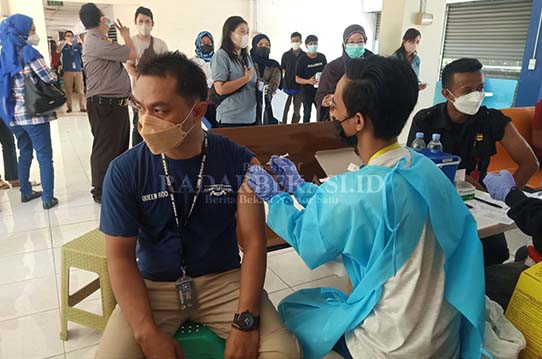 Kegiatan vaksinasi berlangsung di Foodcourt Tower C Apartemen Grand Center Point, Jalan Ahmad Yani, kelurahan Margajaya, Kecamatan Bekasi Selatan, Kota Bekasi, Sabtu dan Minggu (18-19/9). Pihak panitia menyediakan vaksin jenis Sinovac dan Pfizer untuk dosis pertama maupun kedua sebanyak 220 dosis.