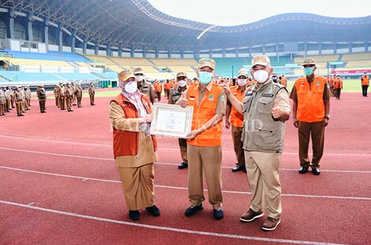Kemudian saat apel pun Wali Kota Bekasi Rahmat Effendi dan Sekretaris Daerah, Renny Hendrawati secara simbolis mengucapkan selamat atas penghargaan yang diterima oleh DP3A Kota Bekasi yang meraih kategori Madya.