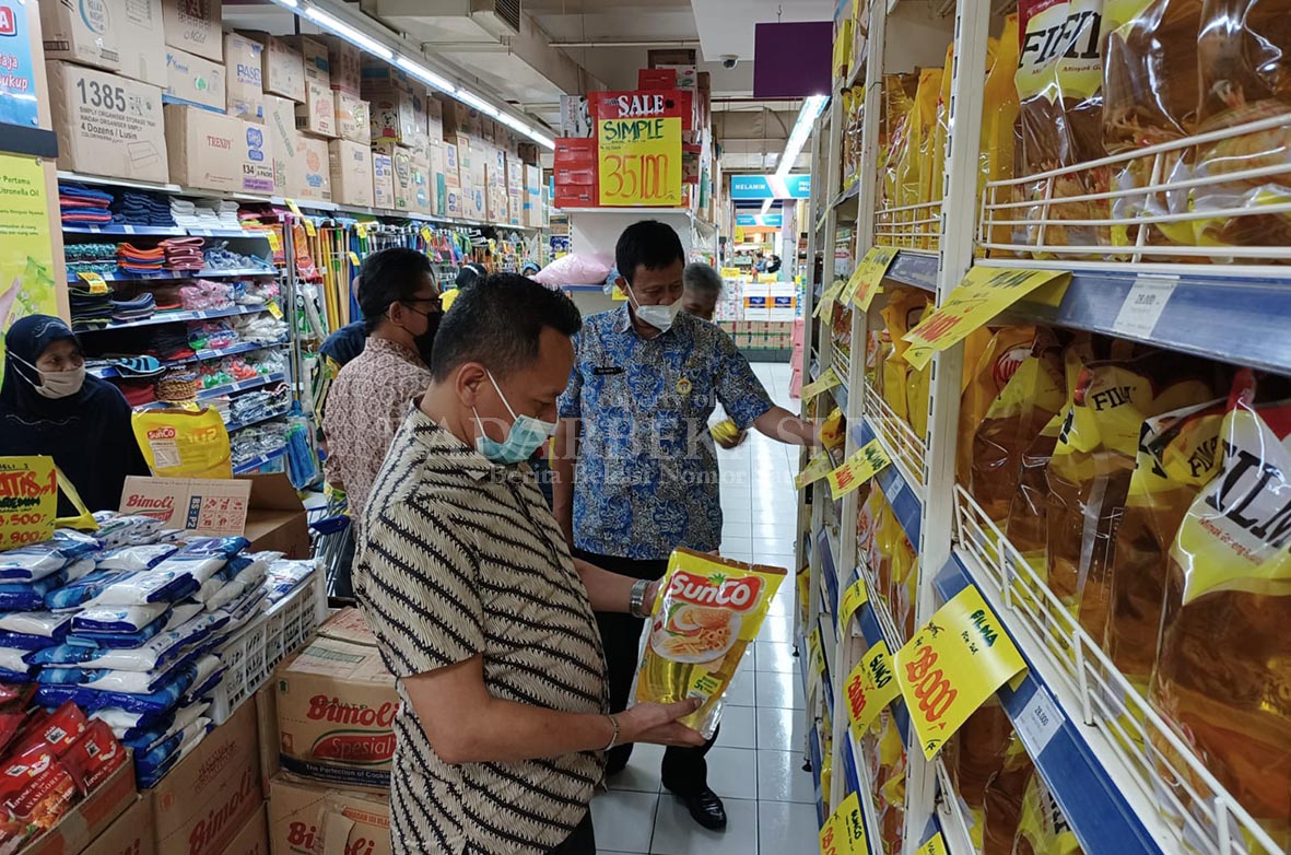 Kepala Dinas Perdagangan dan Perindustrian Kota Bekasi, Tedi Hafni Tresnadi bersama jajarannya melakukan pantauan di beberapa titik ritel ritel modern yang menjual minyak goreng dengan harga sesuai arahan dari Menteri Perdagangan Republik Indonesia.