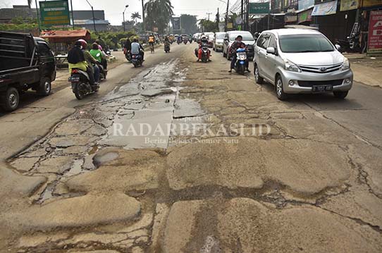 Pantauan Radar Bekasi, sepanjang Jalan Lingkar Utara, banyak titik jalan rusak. Titik terparah berada di depan Perumahan Permata Hijau, dengan kedalam lubang 25 hingga 30 centimeter.Kondisi itu membahayakan pengendara baik roda dua maupun roda empat.