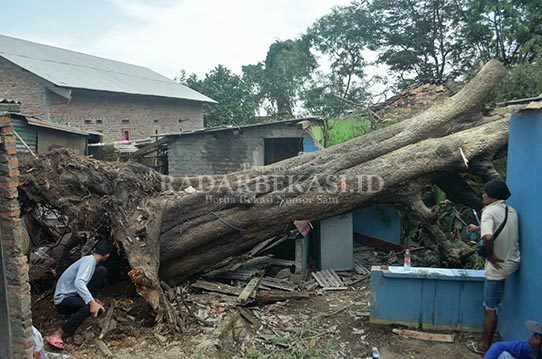 Sementara di Desa Ciantra, Kecamatan Cikarang Selatan, hujan deras yang disertai angin kencang pada Rabu sore (6/4), membuat sebuah pohon jenis Tamarindus Indica berukuran besar, tumbang dan menimpa tiga rumah warga, di Kampung RT 09 RW 05,