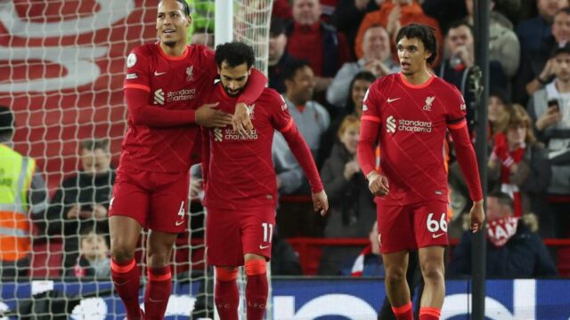 Liverpool (4-3-3): Alisson; Trent Alexander-Arnold, Joel Matip, Virgil van Dijk, Andrew Robertson; Jordan Henderson, Fabinho (86′ James Milner), Thiago Alcantara (80′ Naby Keita); Mohamed Salah, Sadio Mane, Luis Diaz (70′ Diogo Jota).