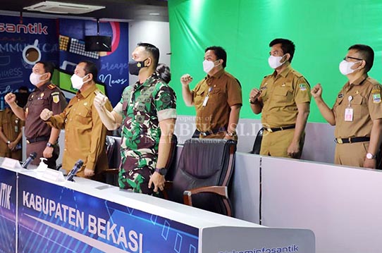RADARBEKASI.ID, BEKASI – Pelaksana tugas (Plt) Bupati Bekasi, Akhmad Marjuki, bersama Forum Komunikasi Pimpinan Daerah (Forkopimda) Kabupaten Bekasi, mengikuti puncak peringatan Hari Otonomi Daerah (Otda) yang ke-26 secara virtual, di Command Center, Gedung Diskominfosantik, Kabupaten Bekasi.