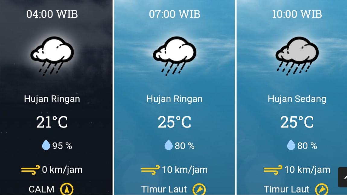 Adapun hujan dengan intensitas sedang dan berpotensi petir diprediksi terjadi pada siang hari. Sementara untuk sore dari hingga malam diprediksi akan kembali berawan serta hujan ringan pada malam hari.