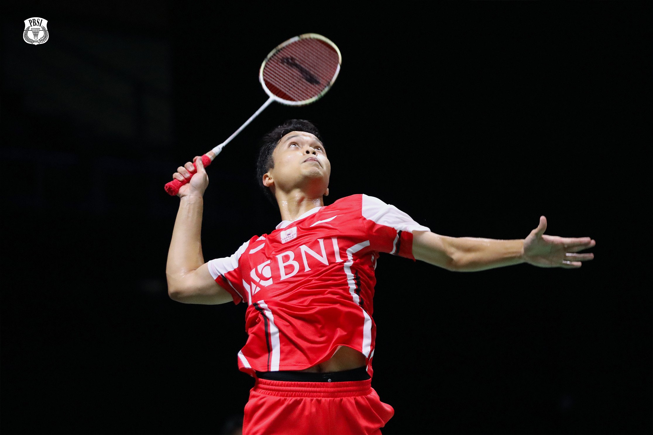 Pebulu tangkis asal Cimahi, Anthony Ginting kalah rubber game 21-8, 17-21, 16-21 pada laga Final Piala Thomas 2022 yang bergulir di Impact Arena, Thailand, Minggu (15/5).