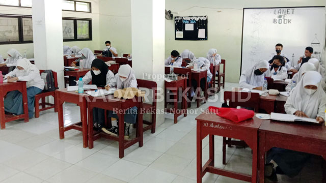 BELAJAR: Sejumlah siswa SMKN 11 Kota Bekasi saat mengikuti pembelajaran tatap muka. DEWI WARDAH/RADAR BEKASI