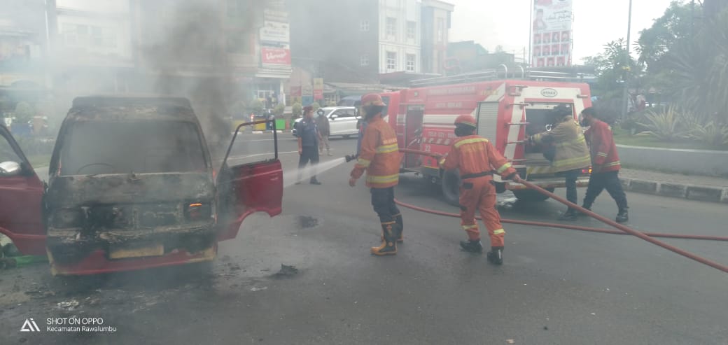 Melihat ada mobil yang terbakar pengurus angkot K11 langsung memanggil Damkar. Selang beberapa menit petgas damkar sampai di lokasi kejadian.