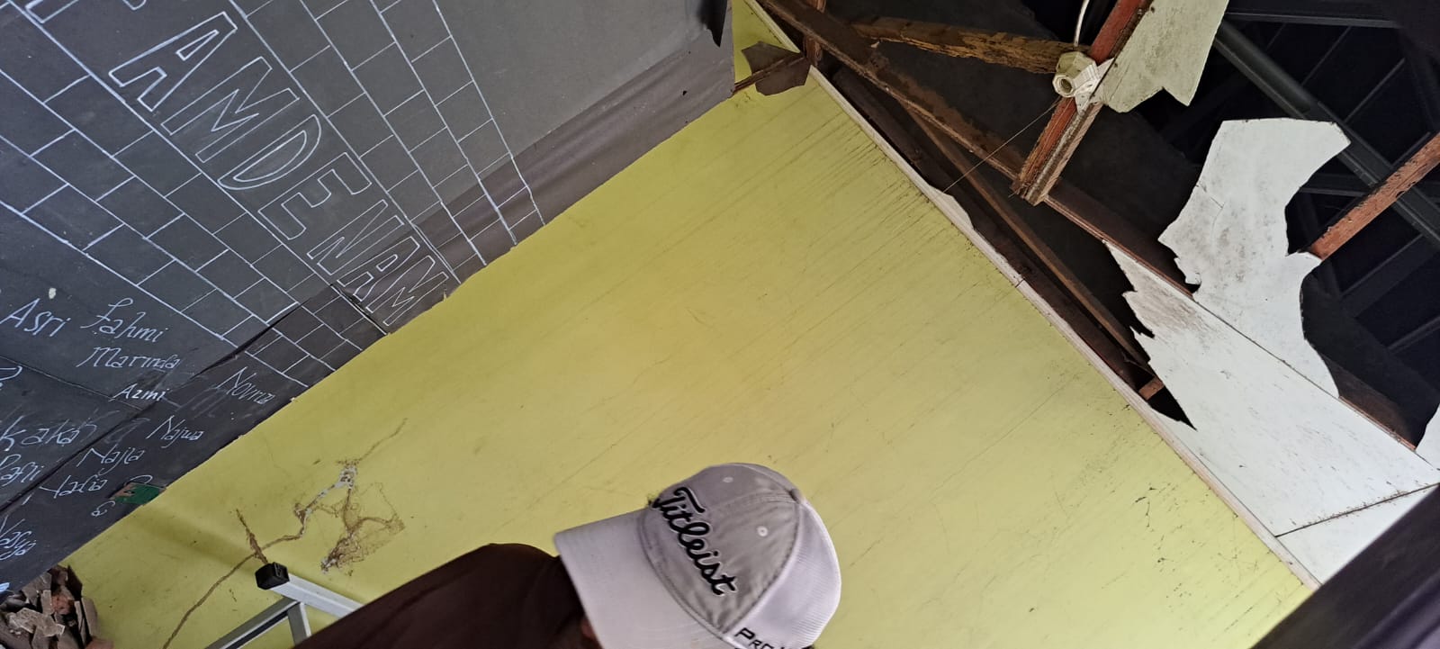 Sebagian atap plafonnya mulai mengalami kerusakan dan runtuh, khususnya di beberapa ruangan kelas.