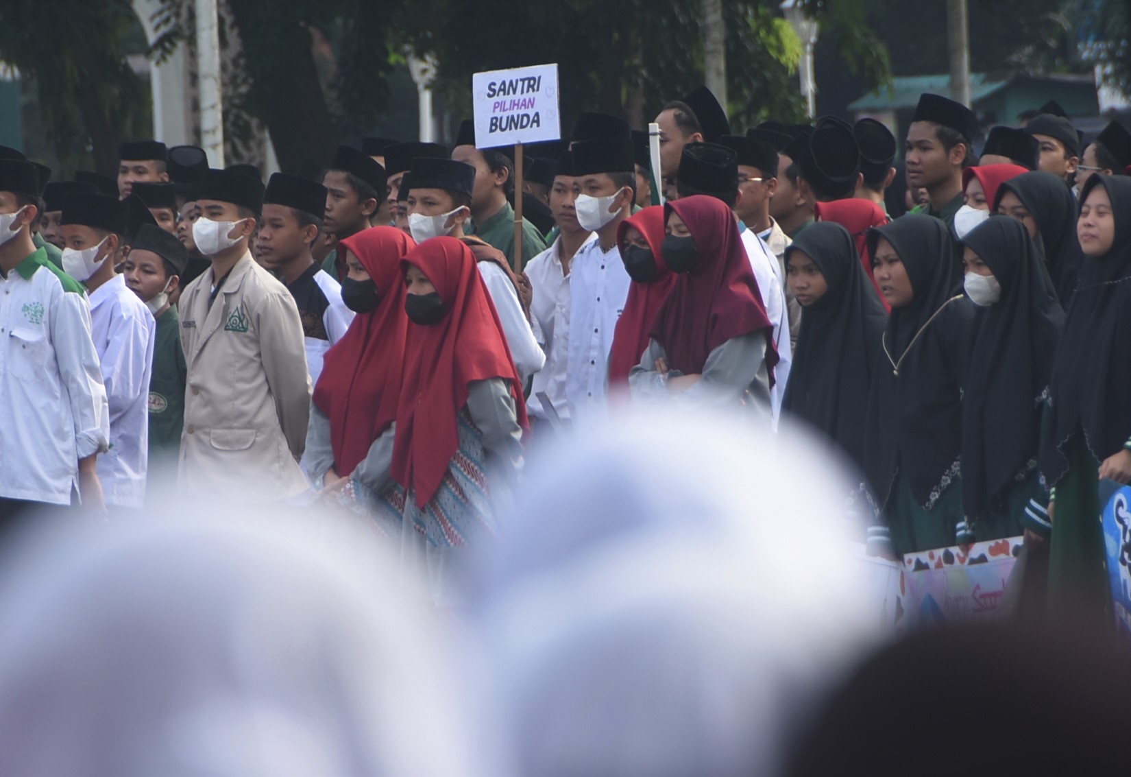UPACARA: Sejumlah santri mengikuti upacara peringatan Hari Santri Nasional 2022 di Alun-alun Kota Bekasi, Sabtu (23/10). RAIZA SEPTIANTO/RADAR BEKASI