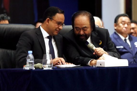 Paloh bersama beberapa elite politik seperti Ketum Partai Demokrat Agus Harimurti Yudhoyono atau AHY hingga Plt Ketum PPP Muhamad Mardiono turut hadir di acara itu.