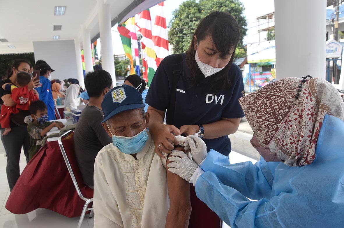 ILUSTRASI : Petugas menyuntikan vaksin booster di Alun alun Bekasi, belum lama ini. RAIZA SEPTIANTO/RADAR BEKASI