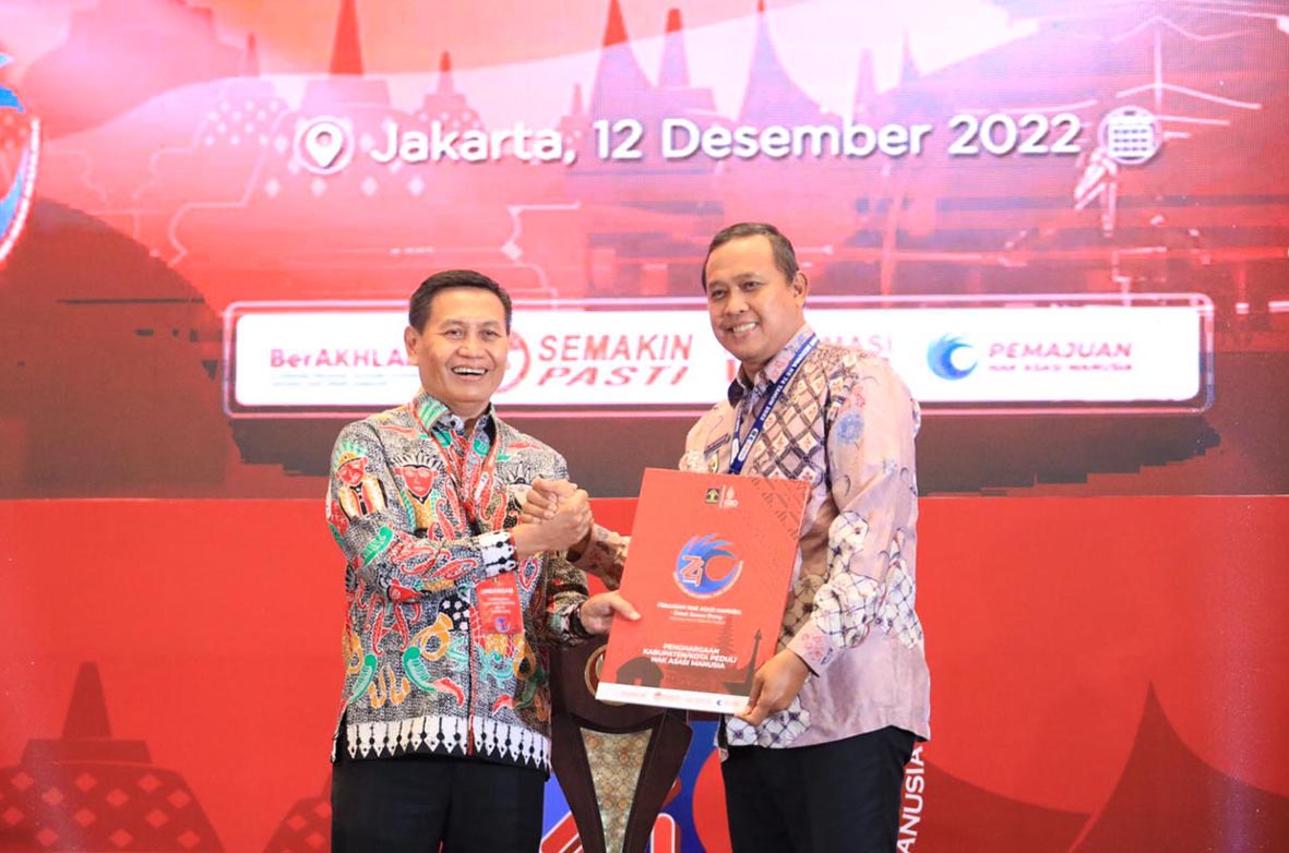 Penghargaan yang diberikan di The Sultan Hotel Ballroom Jakarta tersebut, diterima langsung oleh Plt Wali Kota Bekasi Tri Adhianto, didampingi bersama Asisten Pemerintahan Lintong Diantoputra, Kepala Bagian Hukum Setda Kota Bekasi Dyah Kusumo Winahyu.