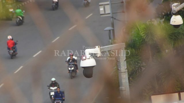 TERPANTAU: Sejumlah pengendara melintas di bawah kamera CCTV di Jalan Ahmad Yani, Bekasi Selatan, Kota Bekasi, belum lama ini. RAIZA SEPTIANTO/RADAR BEKASI