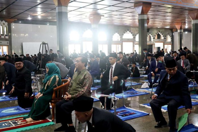 Sewaktu Covid, Lebaran di Al-Zaytun berubah. Salatnya berjarak sangat lapang. Semua jamaahnya duduk di kursi. Di sebelah kursi ada sajadah. Semua gerakan salat dilakukan sambil duduk di kursi. Barulah pada gerakan sujud mereka pindah ke atas sajadah: bersujud di sajadah. Setelah sujud selesai jamaah kembali duduk di kursi. Lalu ke sajadah lagi saat akan sujud lagi.