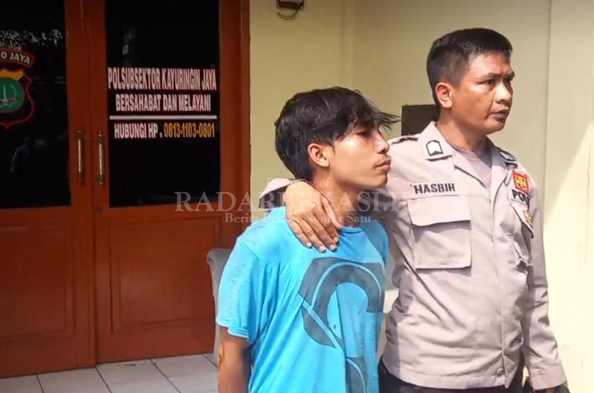 Pelaku ditangkap, setelah motor yang dicuri kehabisan bensin di Jalan Guntur Raya, Kayuringin, Bekasi Selatan, Kota Bekasi Rabu (7/6) siang.
