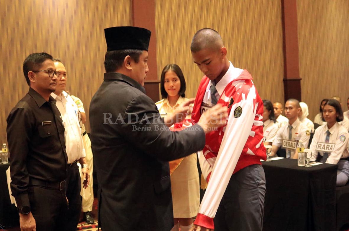 RADARBEKASI.ID, BEKASI – Sekretaris Daerah (Sekda) Kabupaten Bekasi, Dedy Supriyadi memberikan semangat kepada anggota Pasukan Pengibar Bendera Pusaka (Paskibra) yang akan bertugas dalam upacara peringatan Hari Ulang Tahun (HUT) ke-78 Kemerdekaan RI.
