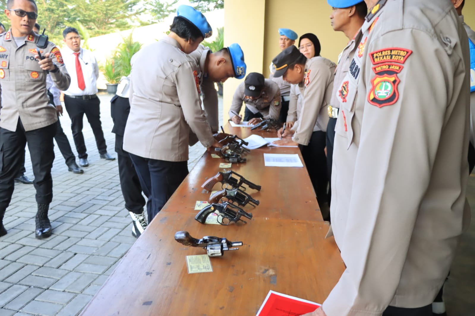 Pemeriksaan senjata itu dilakukan oleh Propam dan diawasi oleh Wakapolres Metro Bekasi Kota AKBP Dany Aryanda. Semua anggota yang menyandang senjata dinas secara tertib menjalani pemeriksaan.