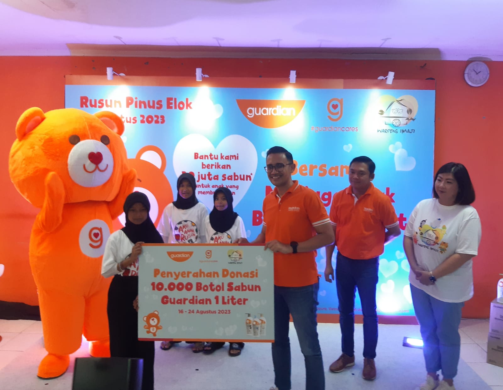 Melalui kampanye “Guardiancares” tahun ini, Guardian menyalurkan 24.000 produk own brand sabun mandi ukuran 1 liter kepada anak-anak dan keluarga pra-sejahtera area Bekasi dan Jakarta, serta memberikan edukasi mengenai pentingnya pemahaman personal hygiene sejak dini.