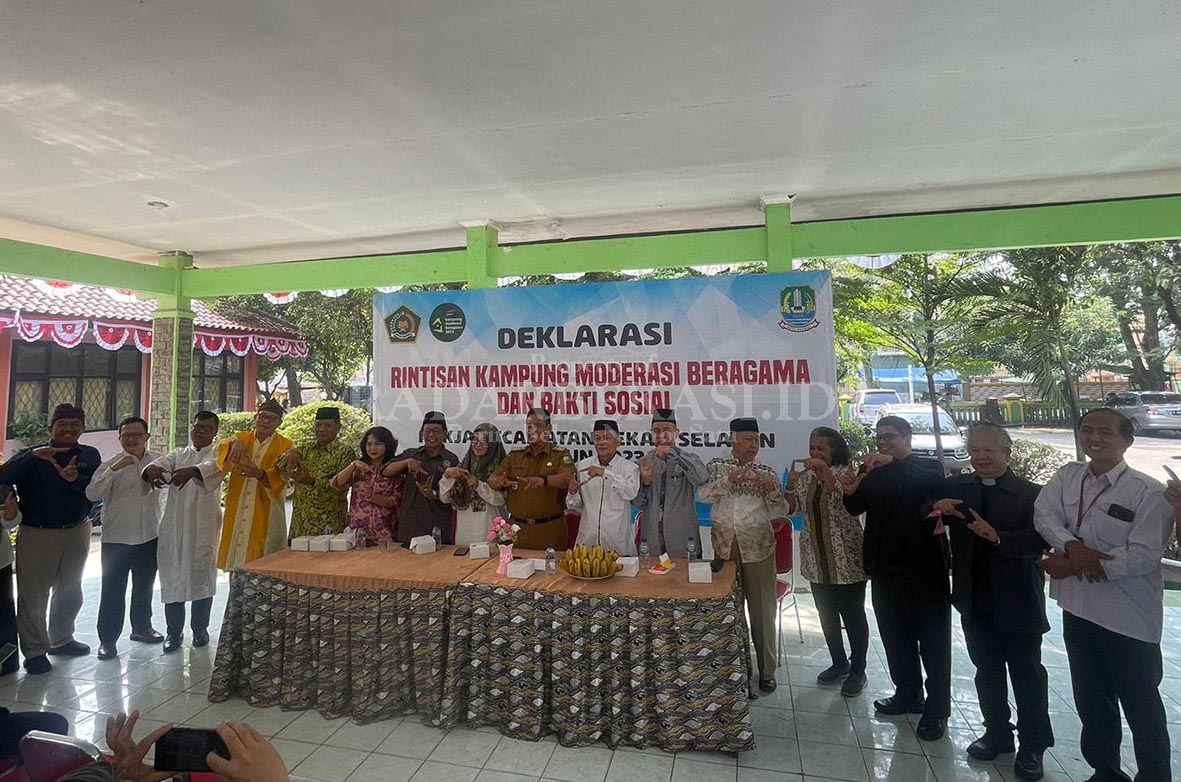 RADARBEKASI.ID, BEKASI – Sejumlah tokoh agama di wilayah Kecamatan Bekasi Selatan berkumpul mendeklarasikan Kelompok Kerja (Pokja) rintisan kampung moderasi beragama, dilanjutkan bakti sosial dengan mengunjungi masjid dan musala. Deklarasi dilaksanakan di pendopo Kantor Kecamatan Bekasi Selatan, Kota Bekasi, Selasa (29/8).
