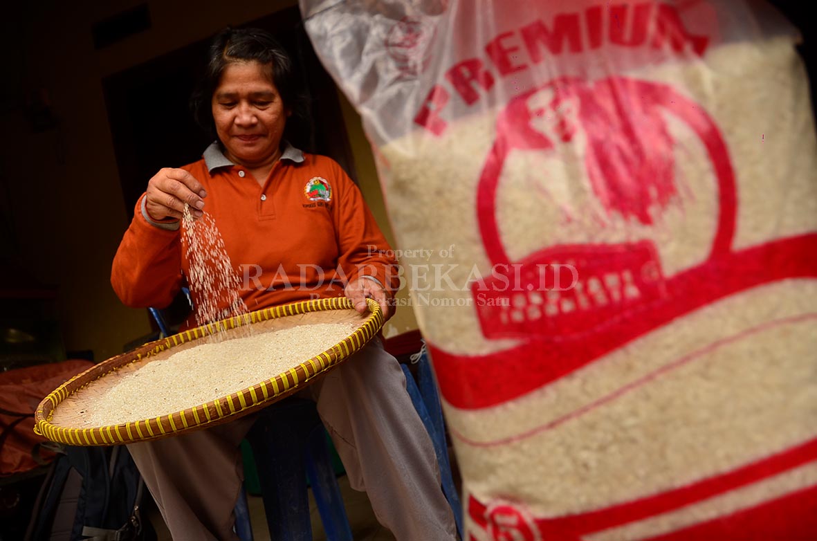 ILUSTRASI:Seorang warga memilah beras premium di Kawasan Rawalumbu, Kota Bekasi, belum lama ini. Kebijakan pembatasan pembelian beras premium dilakukan sejumlah toko retail. RAIZA SEPTIANTO/RADAR BEKASI