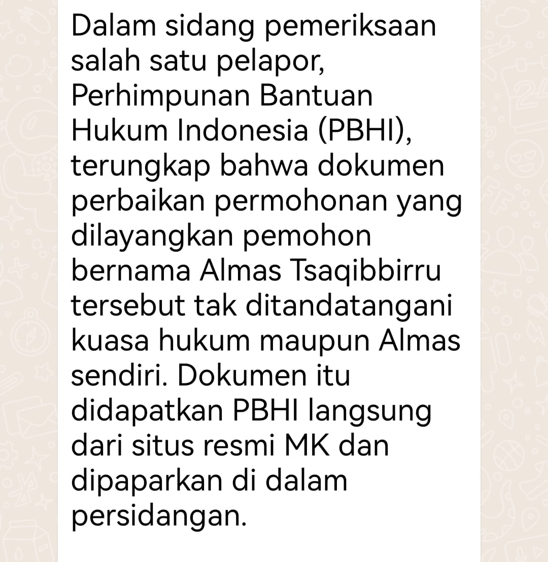 Memang Arif mengakui pernah terhambat saat kirim email. Dokumen itu sudah terkirim. Ada bukti digitalnya. Tapi di MK tidak bisa dibuka. Baik yang berbentuk text maupun PDF.