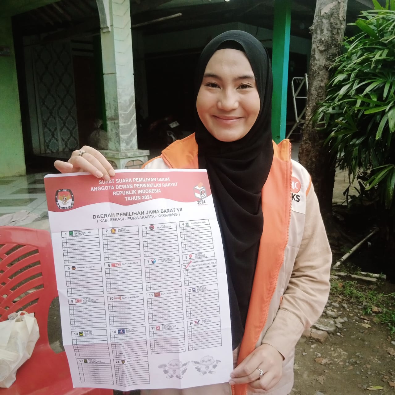 “Saya melakukan sosialisasi ke pemilih tentang tata cara pencoblosan,” papar perempuan kelahiran 12 Agustus 1996 ini.