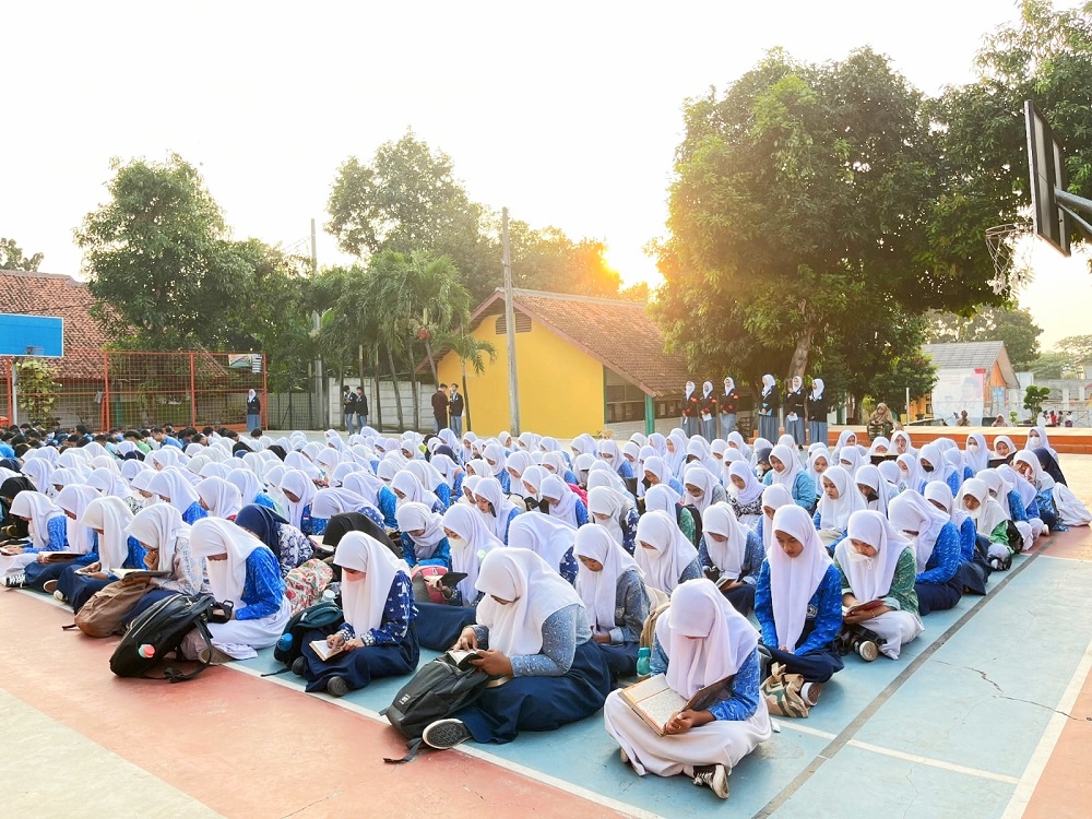 ILUSTRASI: Sejumlah siswa SMAN 7 Kota Bekasi membaca Al Quran bersama-sama di lapangan sekolah. Selama bulan suci Ramadan 2024, durasi jam Pelajaran  siswa SD, SMP, SMA/SMK di Kota dan Kabupaten Bekasi mengalami perubahan. DEWI WARDAH/RADAR BEKASI