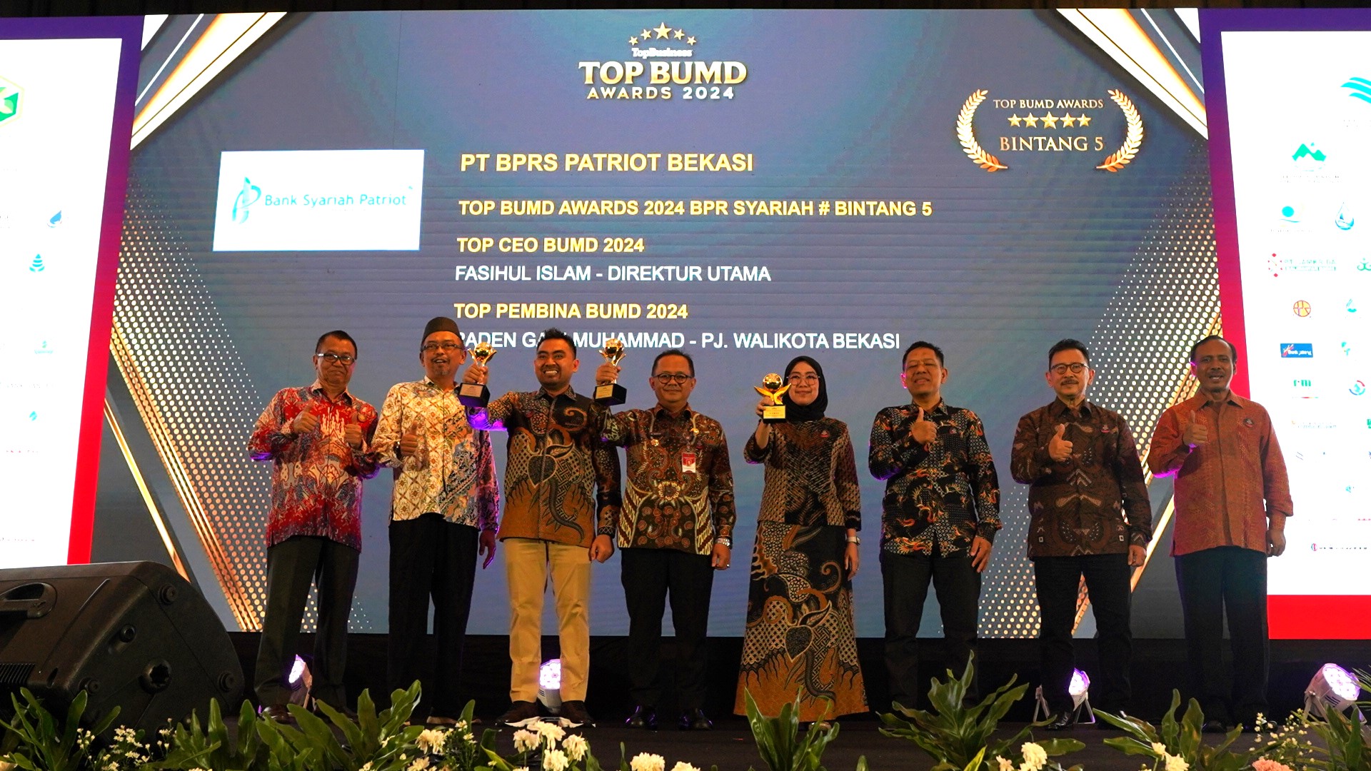 Tiga penghargaan yang diraih yakni TOP BUMD Awards 2024 Bintang 5 untuk BPRS Patriot; TOP CEO BUMD untuk Direktur Utama BPRS Patriot, Fasihul Islam; dan TOP Pembina untuk Pelaksana tugas (Plt) Wali Kota Bekasi, Raden Gani Muhamad.