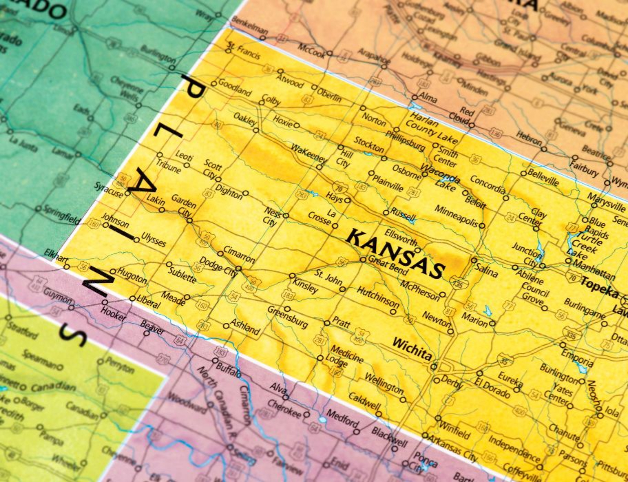 Belahan barat, yang jauh lebih kecil, masuk Kansas. Lawrence di sebelah barat sungai.