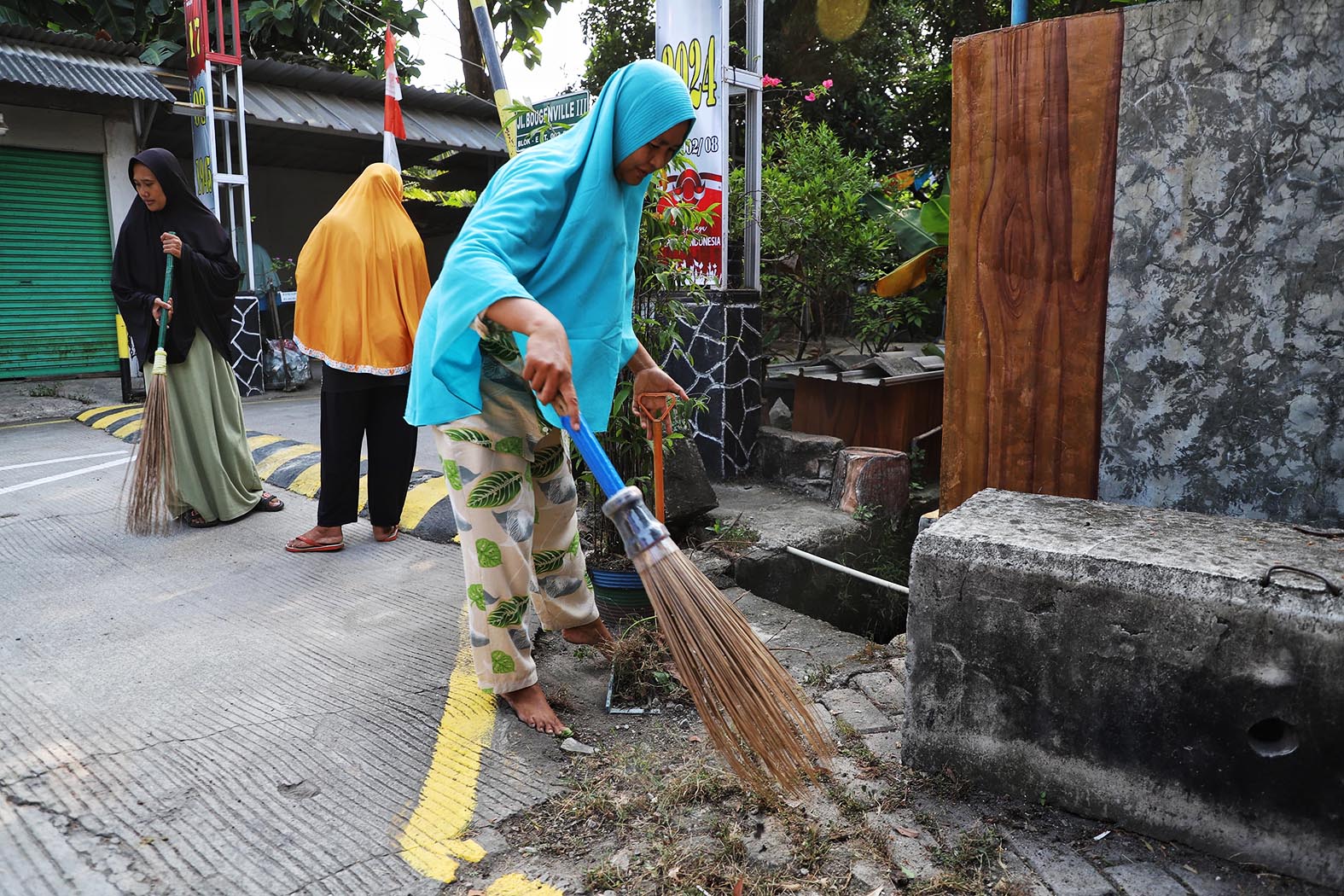 Di wilayah ini, kerja bakti membersihkan lingkungan diikuti oleh para orangtua serta anak-anak mereka.