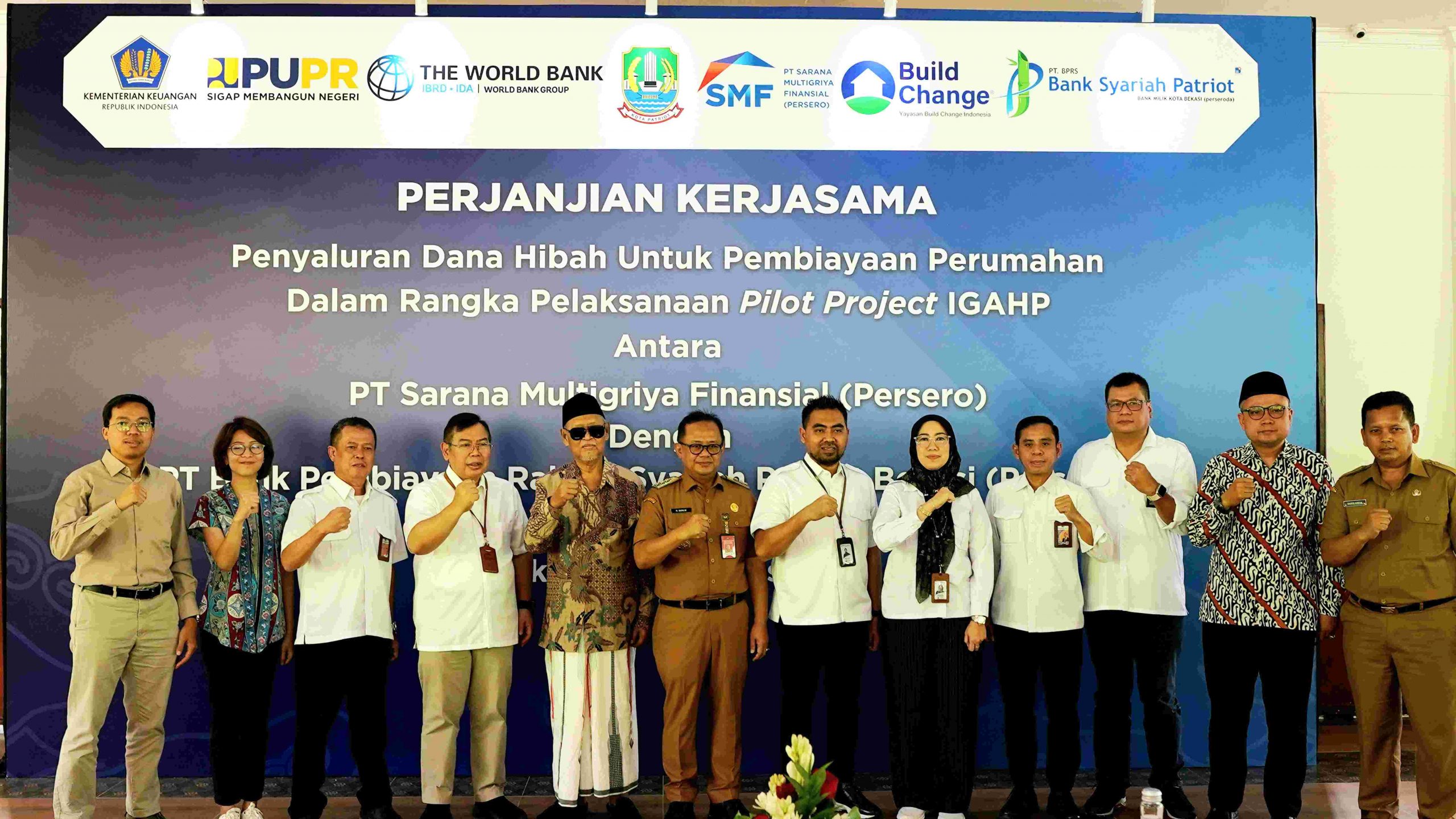 RADARBEKASI.ID, BEKASI – PT Sarana Multigriya Finansial (Persero) atau SMF dan PT Bank Syariah Patriot (Perseroda) atau BPRS Patriot melaksanakan penandatanganan perjanjian kerja sama penyaluran dana hibah untuk pembiayaan perumahan dalam rangka pelaksanaan pilot project “Indonesia Green Affordable Housing Program (IGAHP)” yang diberikan oleh Lembaga Internasional Build Change. Program rumah hijau yang terjangkau ini menyasar masyarakat berpenghasilan rendah (MBR) di Kota Bekasi.
