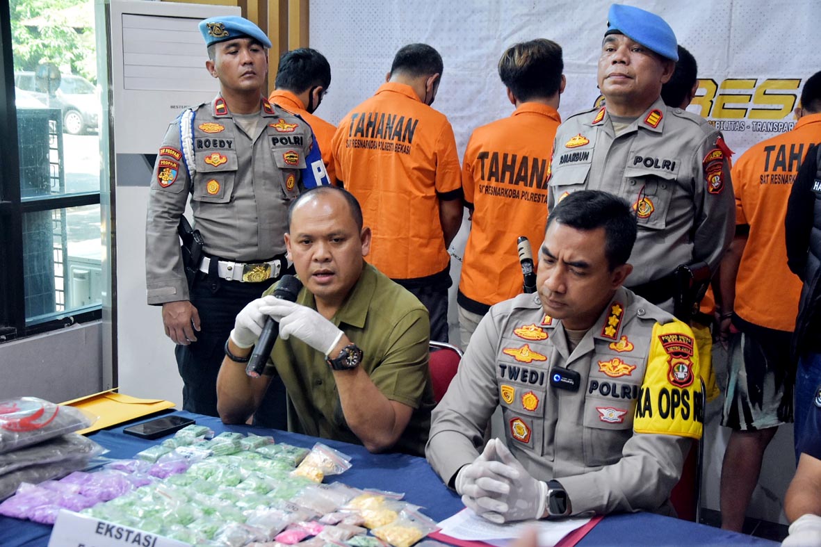 Para pengedar yang telah ditetapkan tersangka meliputi K (37) dari Karawang, MJ (30) dari Pasirgombong, FF (27) dari Cikarang Kota, H (34) dari Tambun Selatan, H (23) dari Sukabumi, AW (25) dari Babelan, JA (37) dari Jakarta Utara, dan S (54) dari Jakarta Selatan.