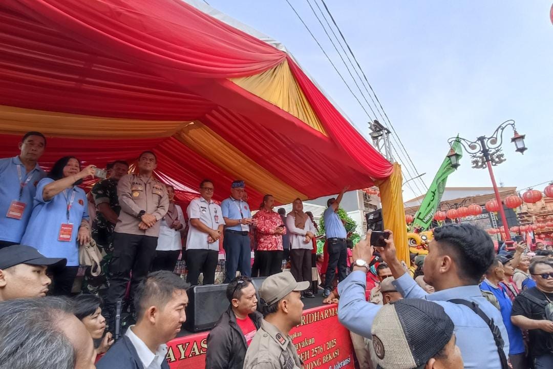 RADARBEKASI.ID, BEKASI – Pj Wali Kota Bekasi, Raden Gani Muhammad, menghadiri acara arak-arakan Cap Go Meh 2025 di Kelenteng Hok Lay Kiong, Jalan Mayor Oking, Kelurahan Margahayu, Kecamatan Bekasi Timur, Kota Bekasi, pada Rabu (12/2).